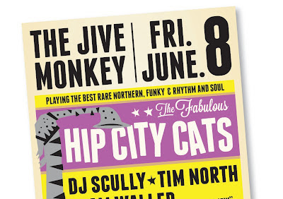 Another double sided flyer for Hip City Cats Northern Soul night in Brighton at the Jive Monkey.